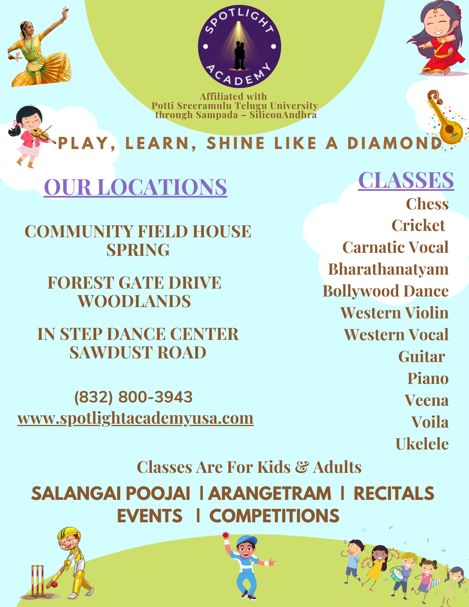 Spotlight Academy offers a wide variety of performance arts, sports and other classes. Below is a glimpse of various classes we offer.